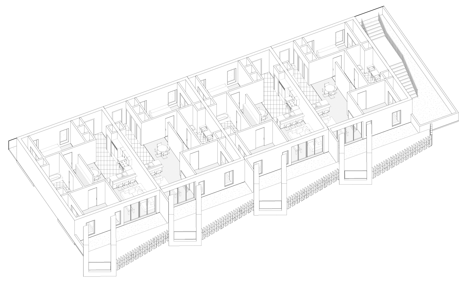 This project presents an iterative study of façade strategies for a flexible, low-density multifamily residential development. Designed to be site-agnostic, the system can be adapted to a range of urban or suburban contexts without compromising architectural character or constructability.