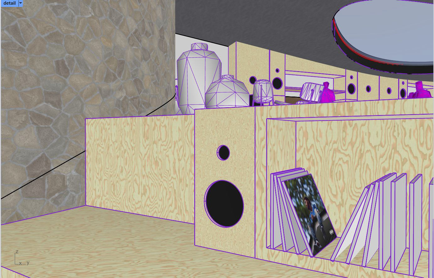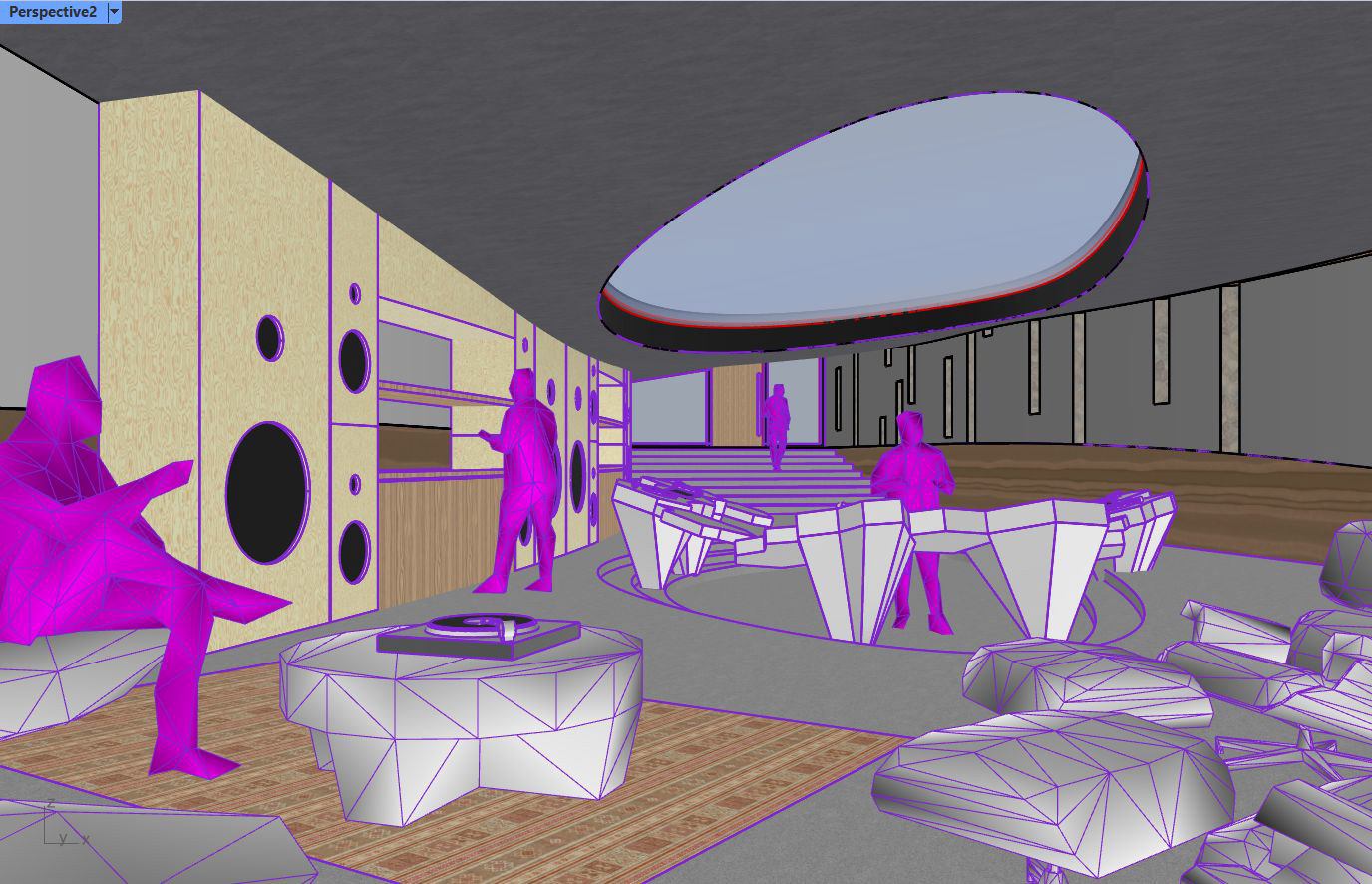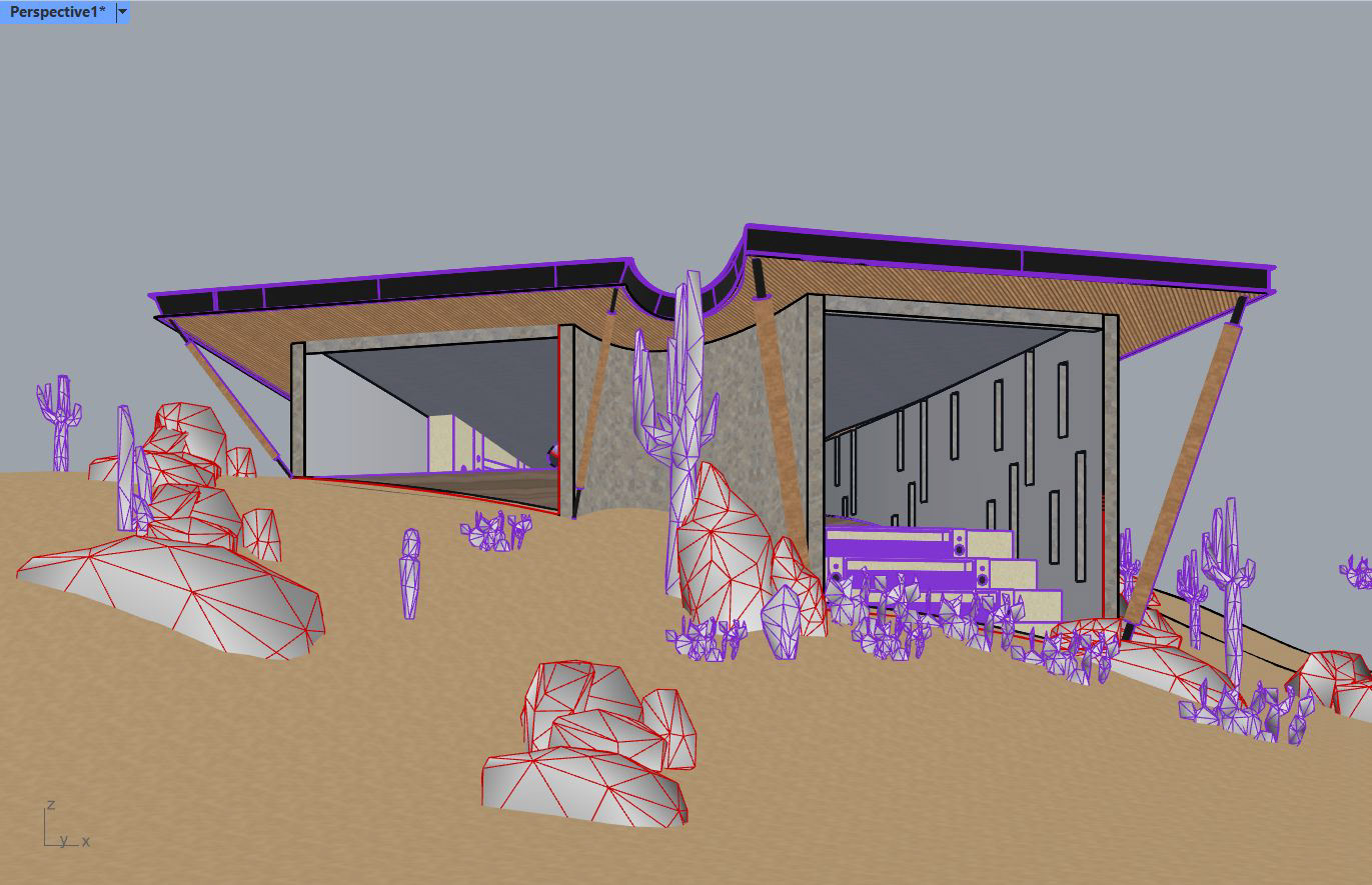 For deciBelé, AI-generated imagery is not produced through detached or sequential prompting, but through a live, bidirectional link between generative image models and active Rhino geometry. Visual output is driven directly by the viewport itself—capturing massing, proportion, and spatial intent in real time—so prompts operate as contextual modifiers rather than speculative instructions. This integration ensures that every image remains architecturally grounded, evolving in lockstep with the geometry it represents.